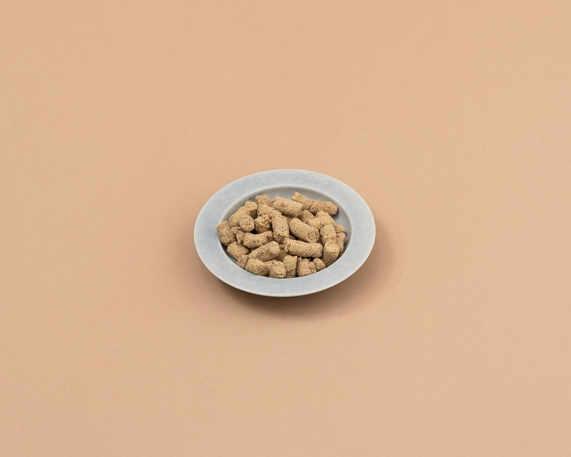 水分7%以下、粗たん白質22.2%、粗脂肪8.6%、粗繊維2.6%、粗灰分4.0% 、カルシウム0.57%、