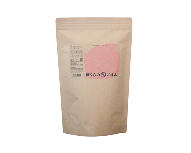 宮崎県産きなこ豚(モモ肉)、米、じゃがいも、かぼちゃ、キャベツ、小松菜、人参、玄米、大豆、黒豆、おから、米ぬか、すだき糖、えごま、卵殻カルシウム、ビール酵母、干ししいたけ、昆布、りんご皮、酒粕