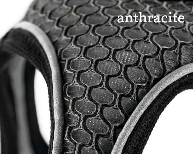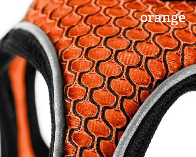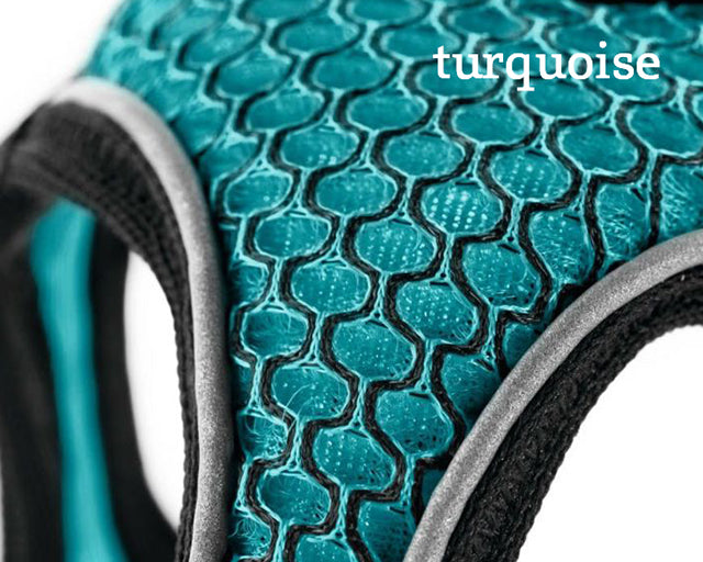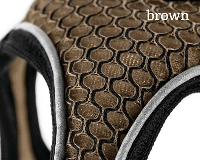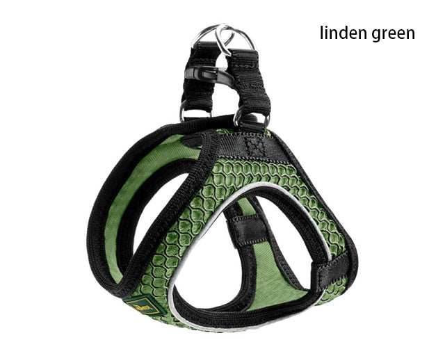 新開発のポリエステル製3Dメッシュ素材を使用し、非常に軽くソフトでしなやかな作り。胸部全体で包み込むデザインで愛犬の負担を軽減します。