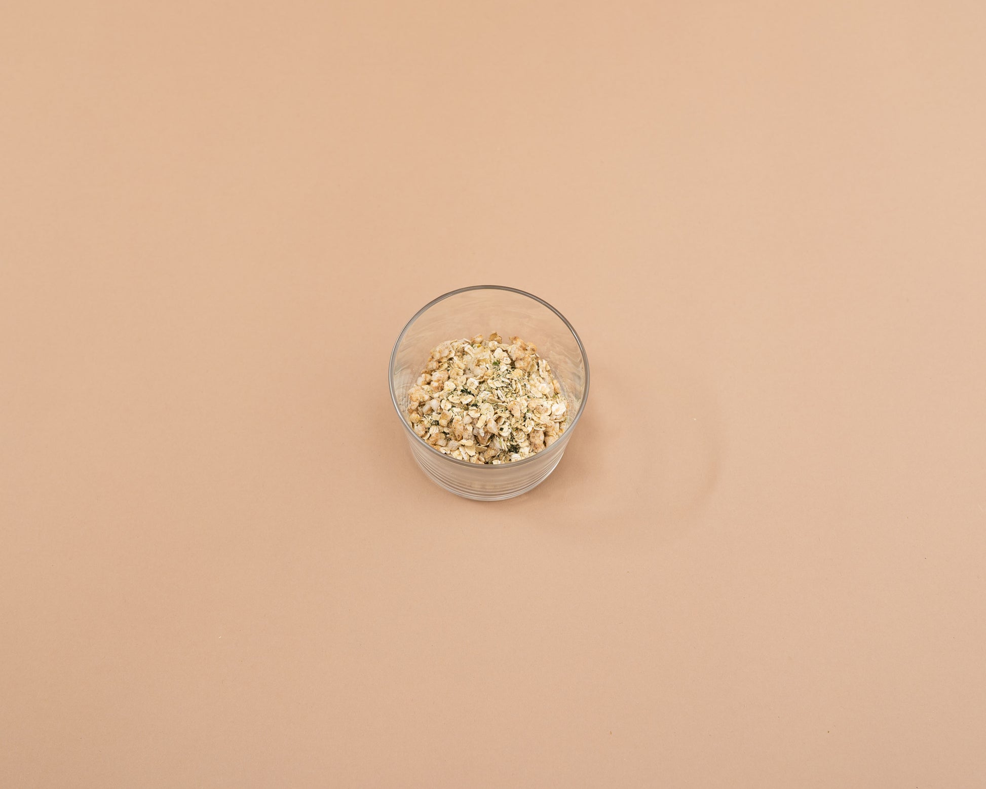 お湯で戻すとふわっと香ばしい匂いがたち、食欲がないパートナーも目を輝かせます。穀類はすぐに柔らかくなるので、消化能力が弱ってきたシニア犬にもおすすめ。豊富な素材で栄養補給もバッチリ。肉や魚は好みで選んでプラスしてください。