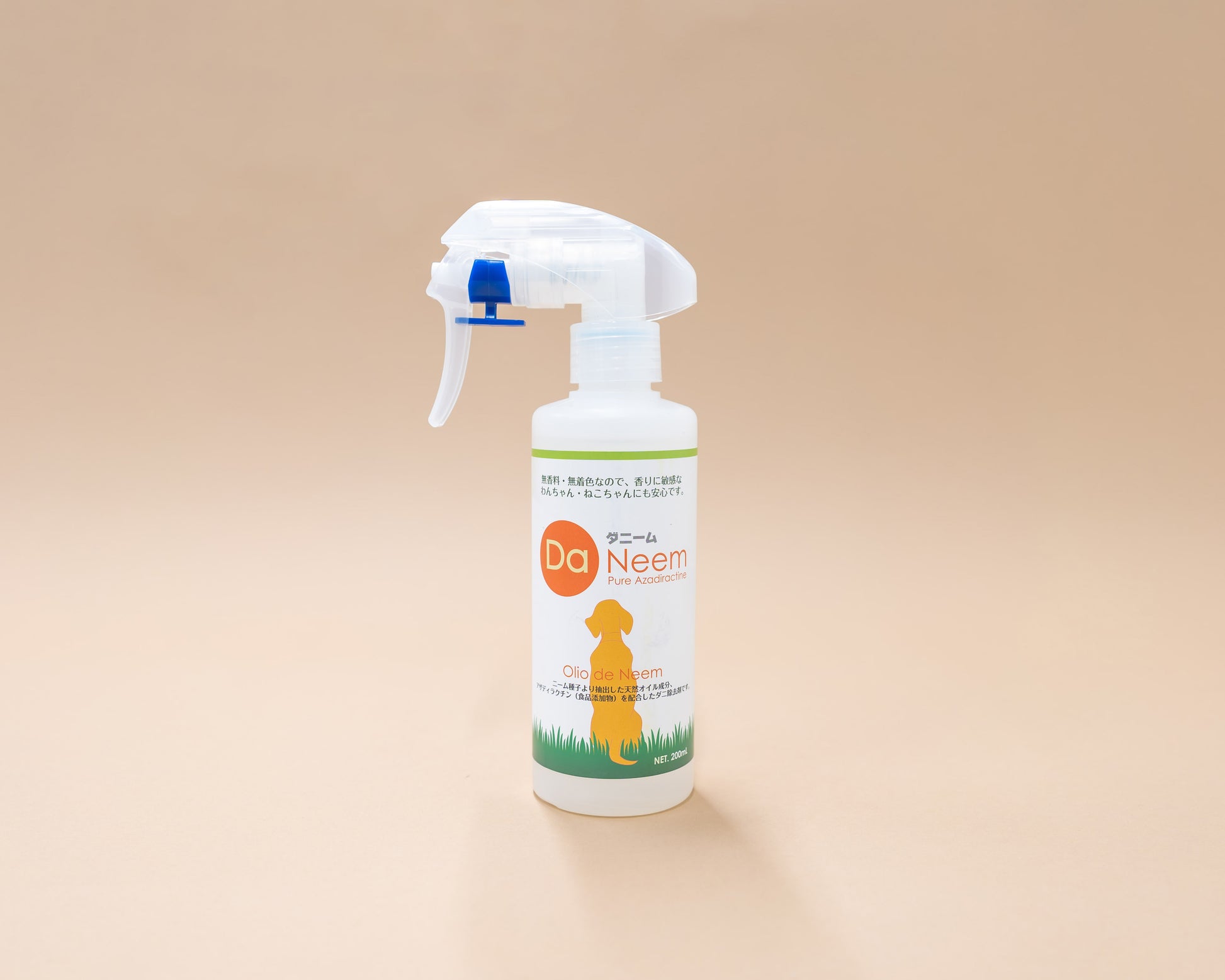 ニームを使用したダニ予防スプレーはいくつかございますが、この「Da Neem(ダニーム)」の大きな特徴は、ニームオイルからアザディラクチンを特許製法で抽出し、他社製に比べて高純度の水溶性アザディラクチンを十分量使用した処方にて製造しているところです。