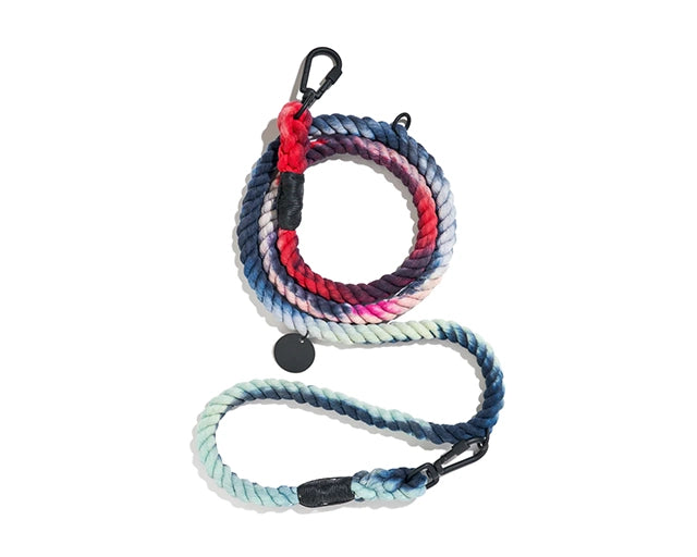 漁師さんが使う数百キロもの引っ張りにも耐える丈夫なロープを使った発色のよい色使いが自慢です。ブルックリンの工房でひとつひとつていねいに仕上げられた職人さんの技が光る犬具です。