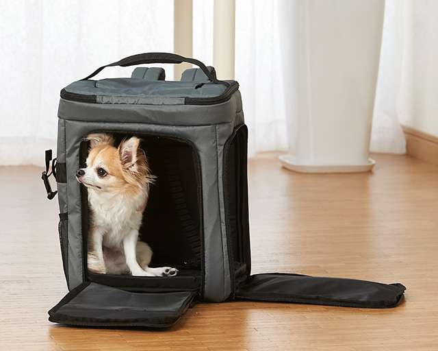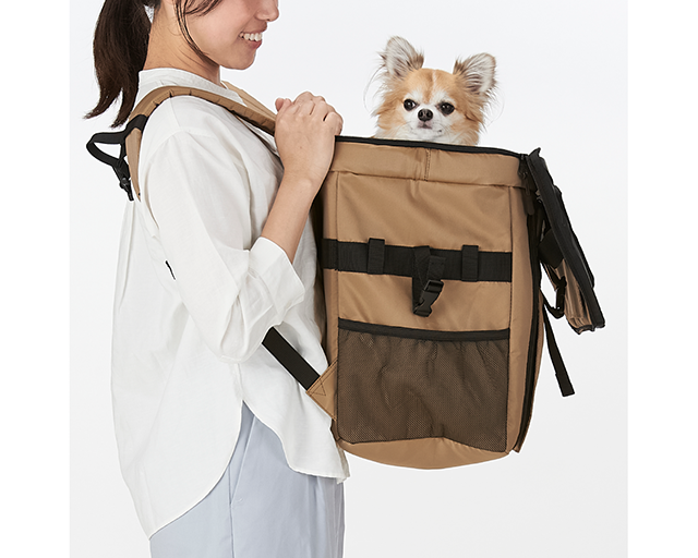 自転車移動時だけでなく、リュックや簡易ハウスとしても使える3wayペットリュック。