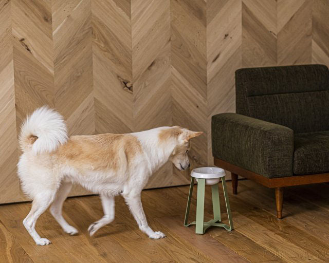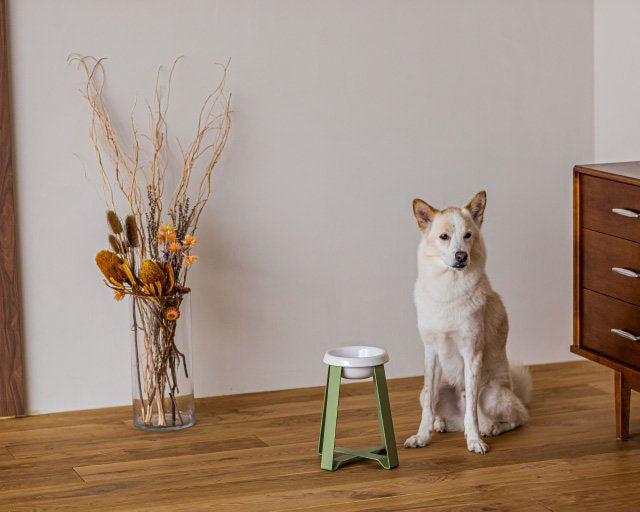pecoloのフードスタンドは、日本の「お膳」をモチーフに開発されました。ペットの食事をサポートしながら、食べる様子も少し背筋がしゃんと見える高さになっています。