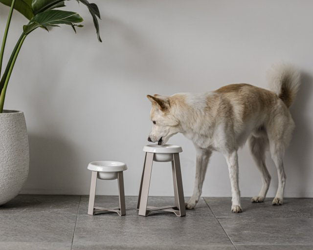 それぞれに合った大きさのボウルと高さのスタンドを使うことで、首や前足への負担が少なくなり、食べる姿勢も安定します。