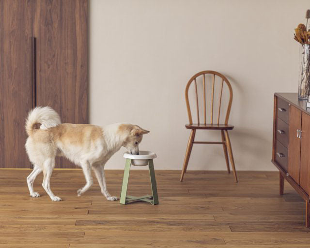 pecoloのフードスタンドは、日本の「お膳」をモチーフに開発されました。ペットの食事をサポートしながら、食べる様子も少し背筋がしゃんと見える高さになっています。