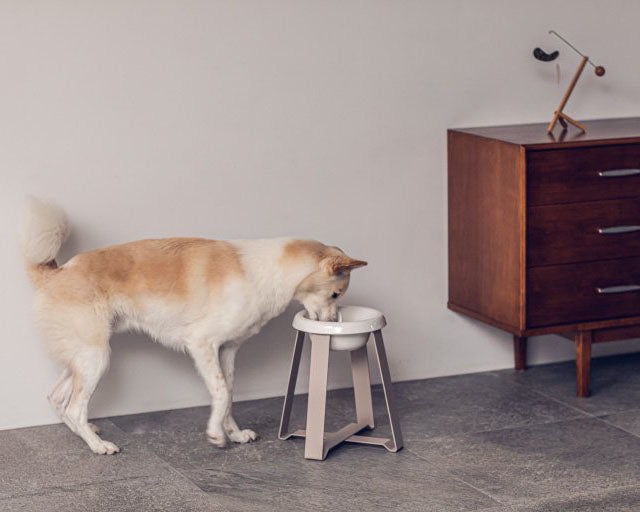 それぞれに合った大きさのボウルと高さのスタンドを使うことで、首や前足への負担が少なくなり、食べる姿勢も安定します。