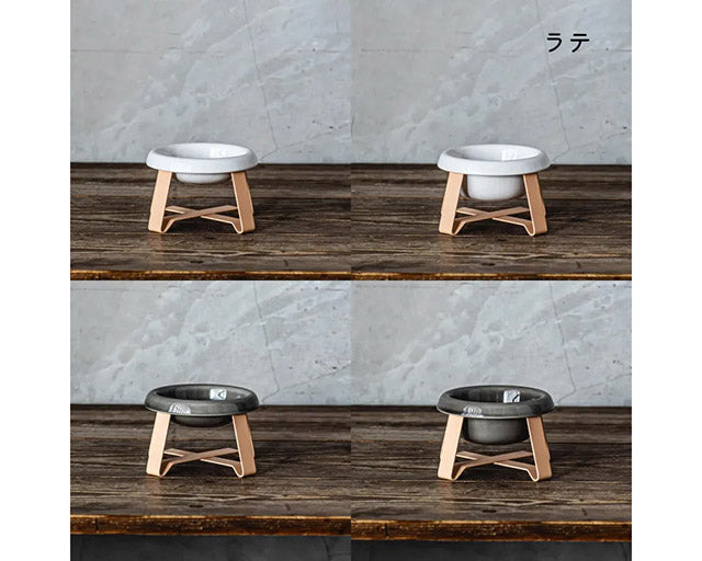 上に乗せる器が、陶器の深型・浅型(愛知県瀬戸焼)の2種類ございます。フードスタンドのカラーは全部で8色ございます。