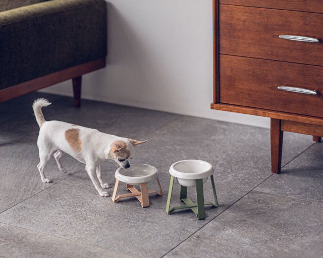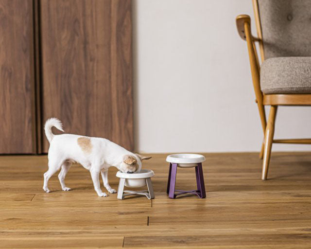 それぞれに合った大きさのボウルと高さのスタンドを使うことで、首や前足への負担が少なくなり、食べる姿勢も安定します。