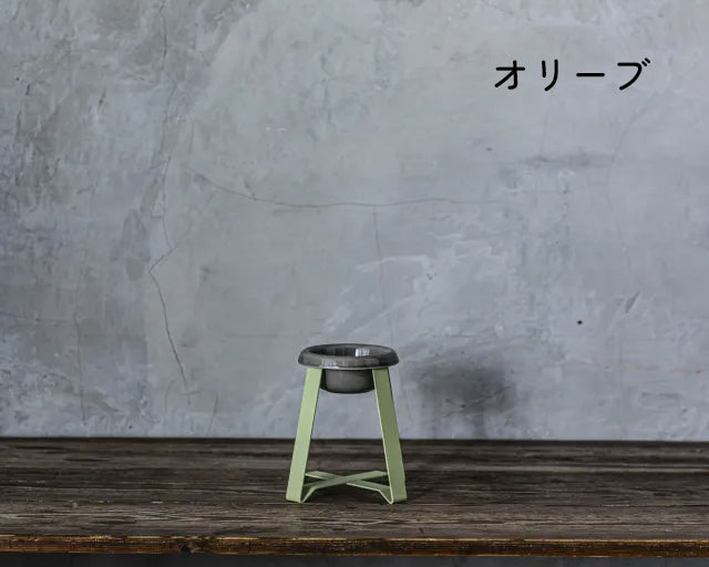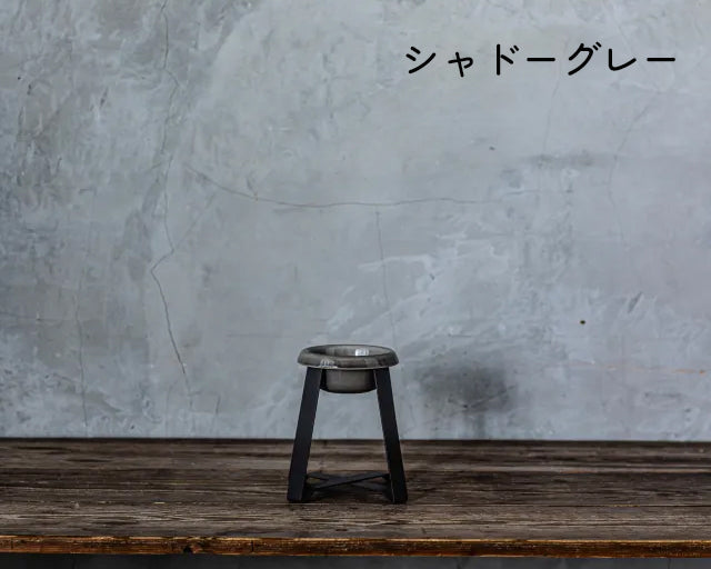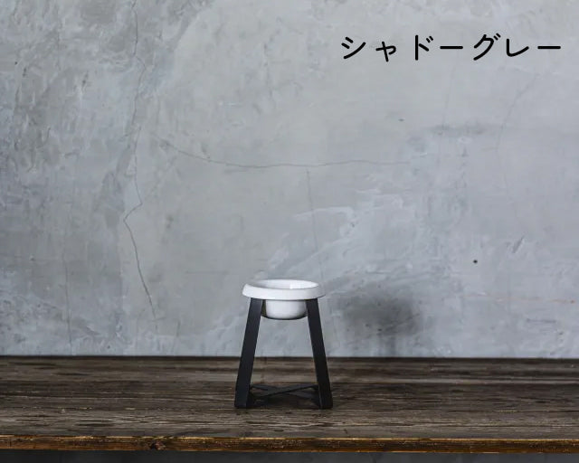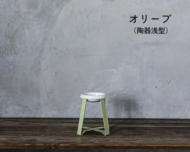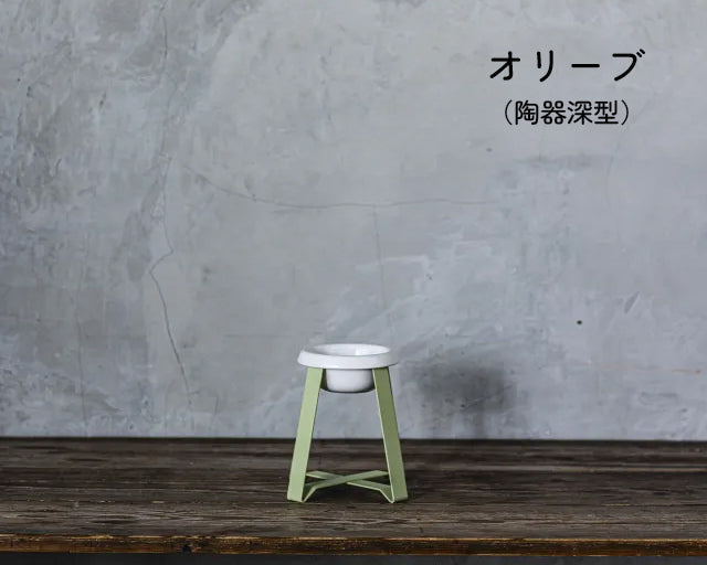 上に乗せる器が、陶器の深型・浅型(愛知県瀬戸焼)の2種類ございます。フードスタンドのカラーは全部で3色ございます。