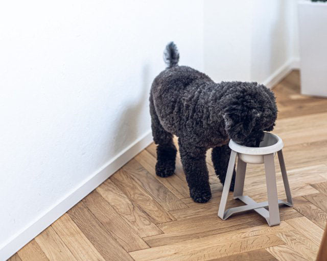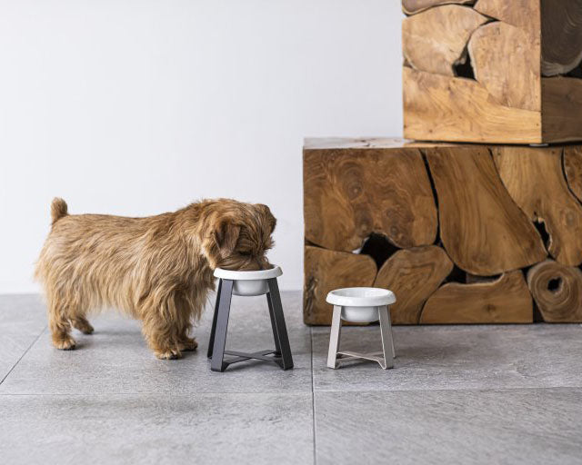 それぞれに合った大きさのボウルと高さのスタンドを使うことで、首や前足への負担が少なくなり、食べる姿勢も安定します。