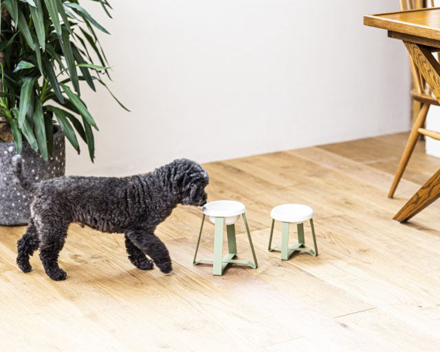 pecoloのフードスタンドは、日本の「お膳」をモチーフに開発されました。ペットの食事をサポートしながら、食べる様子も少し背筋がしゃんと見える高さになっています。