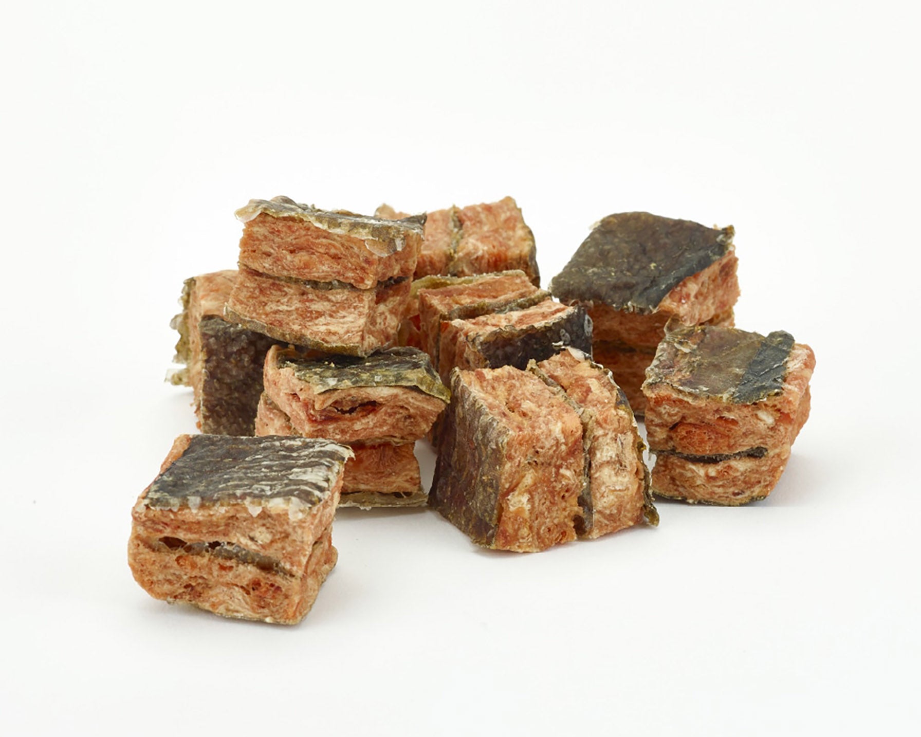 サーモンとホワイトフィッシュの皮を層のように重ねて作られたトリーツです。