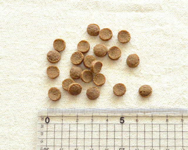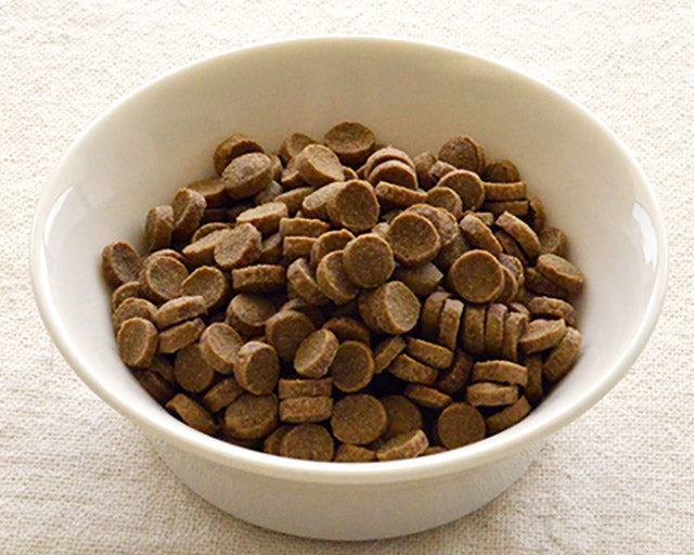国産のマグロとタラをたっぷり使用し、マグロ節とカツオ節のダブル魚だしを使用することで、お出汁の香りと味わいがさらにアップしました。獣医師監修のもと素材の栄養素を生かした栄養満点レシピ。顎の小さいワンちゃんにもうれしい小粒タイプです。