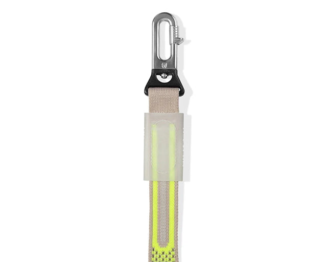 繊維に練り込まれた蓄光剤により、夜間のお散歩でリードが光ります。