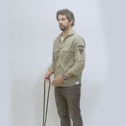 ハンズフリーリーシュはその名の通り、リーシュを肩に巻いて、胴囲に