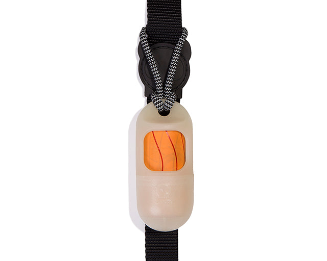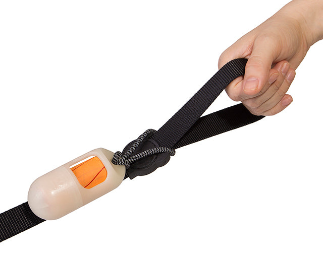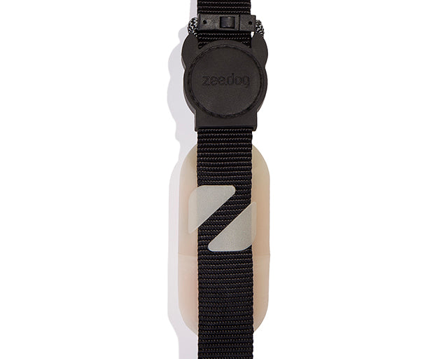 携帯時にはカラビナのほか、本体後ろのクリップでSサイズ以上のzee.dogリードに装着することができます。(XSサイズのリードは装着できません)