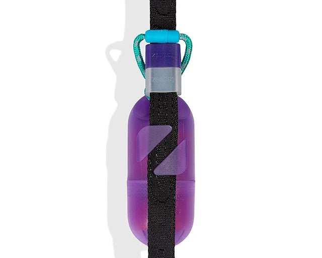 携帯時にはカラビナのほか、本体後ろのクリップでSサイズ以上のzee.dogリードに装着することができます。(XSサイズのリードは装着できません)