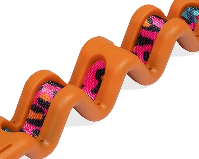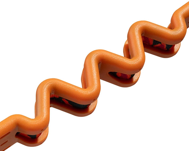 リード本体にはポリエチレンスプリングを装着していますので、リード全体が伸び縮みすることにより、わんちゃんにも飼い主さんにもショックを軽減します。